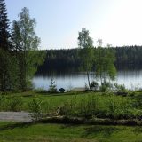 Tontti on tasaista ja nurmetettua mökin ympäriltä, rantaanpäin on loivaa rinnettä.